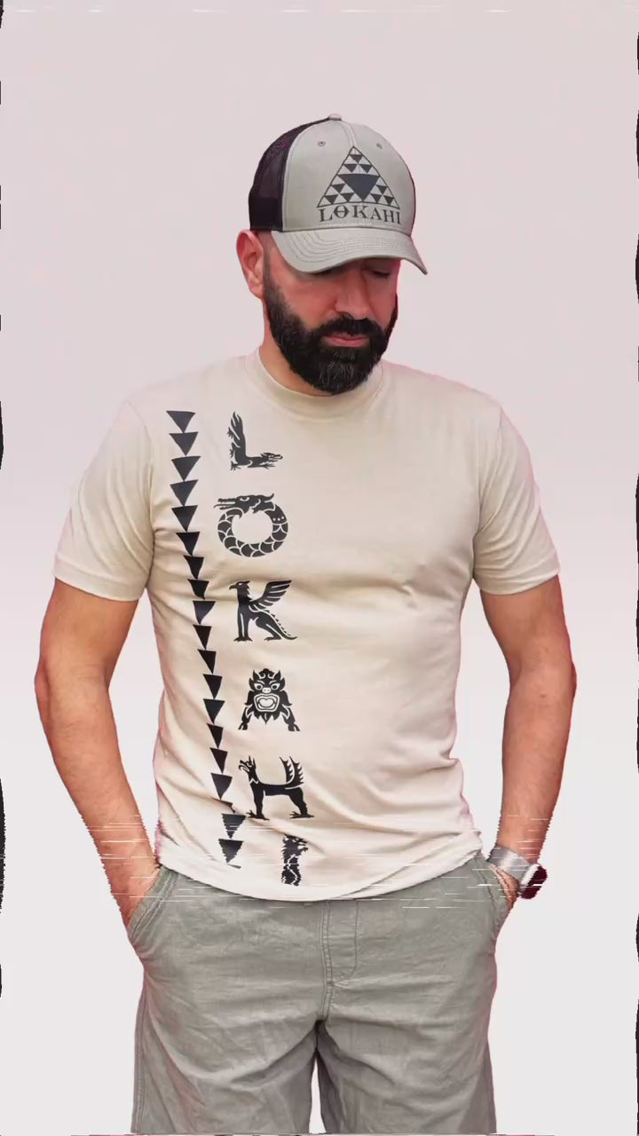 T-shirt Lokahi, vestibiltà normale, scritta verticale.